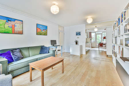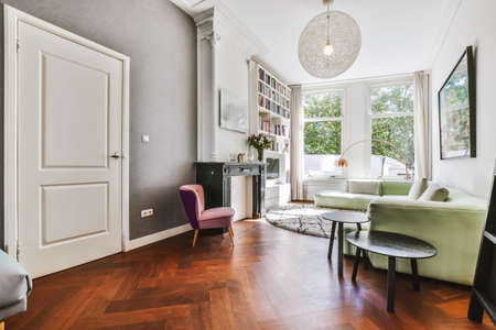 Amsterdam, Netherlands - October 6, 2020: Elegant and spacious living room with beautiful furniture