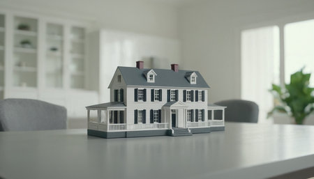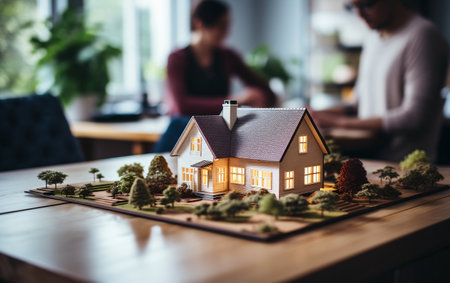 Small Scale Model of a Contemporary House Design On the Table In A Real Estate Office. Generative AI.