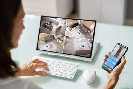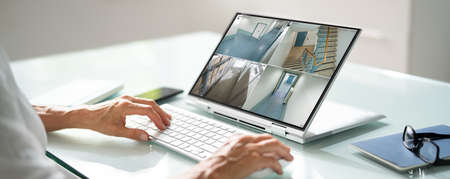 Security CCTV Camera Video Surveillance Footage On Laptop