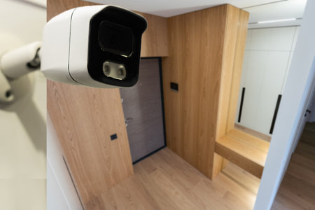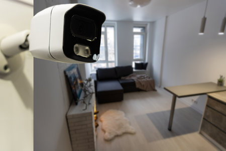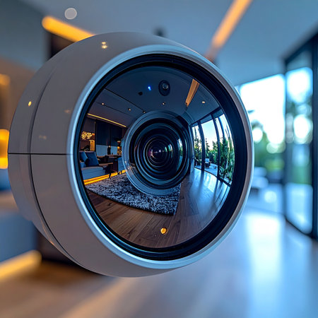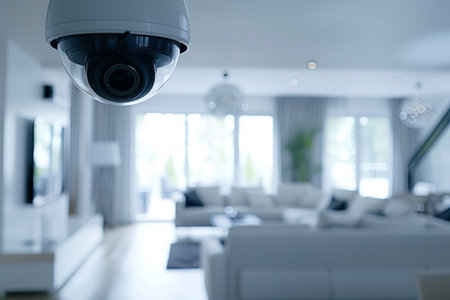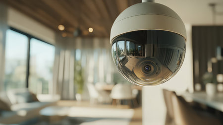 A state-of-the-art security camera stands as a silent guardian, its wide-angle lens capturing every detail of a modern, luxurious interior. This smart device represents the pinnacle of home automation and digital protection, offering peace of mind through constant, vigilant surveillance.