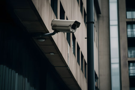 Panorama of multiple security cameras installed on the exterior wall of a building, generative AI illustration