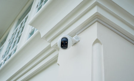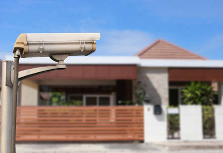 A lone CCTV camera mounted in front of a house, keeping watch to ensure safety, set against a backdrop