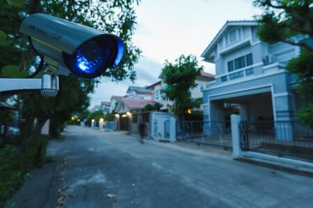 Mini cctv cameras installed on metal pole outside the house to record and to do security at home when the house owner stayed outside, soft and selective focus on cctv cameras.