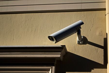Surveillance camera on the wall of the building. Monitoring and security. Protection of property and territory