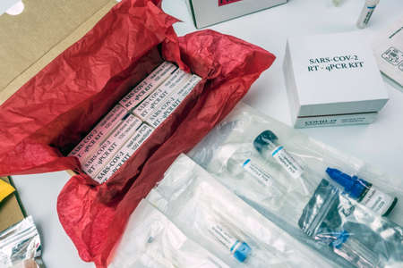 Covid-19 PCR kit in hospital warehouse, conceptual image