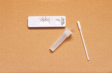Rapid Antigen Test kit with Negative result during swab COVID-19 testing. Coronavirus Self nasal or Home test, Lockdown and Home Isolation concept