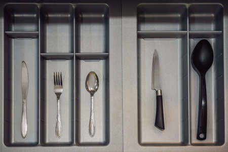 Minimalist kitchen. Only the most necessary. Spoon, fork, knife