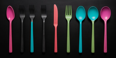 array of cooking utensils arranged in colorful and textural flatlay, created with generative ai