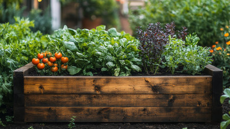 Homegrown Bounty A Rustic Raised Bed Garden Overflowing with Vibrant, Organic Vegetables.