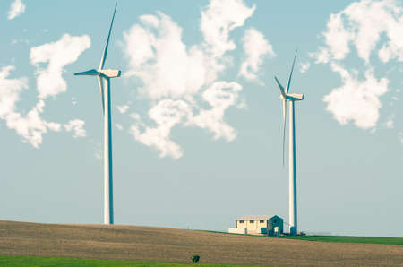 Wind turbines are alternative electricity sources, the concept of sustainable resources, Beautiful sky with wind generators turbines, Renewable energy.
