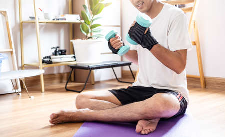 Young Asian man exercising at home