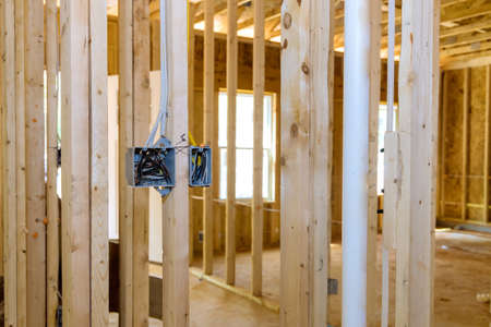 Interior construction of housing Construction building industry new home construction interior drywall tape. Building construction gypsum plaster walls