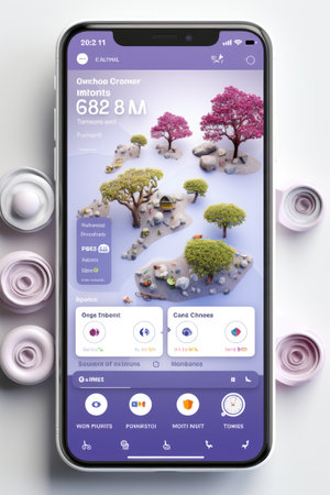 Mobile phone showing an app on a white surface displays modern technology and interface design, showcasing user interaction.