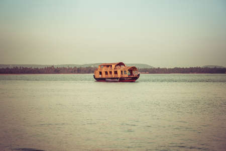 Goa, India - December 20, 2018: Indian style pleasure boat on the Chapora River
