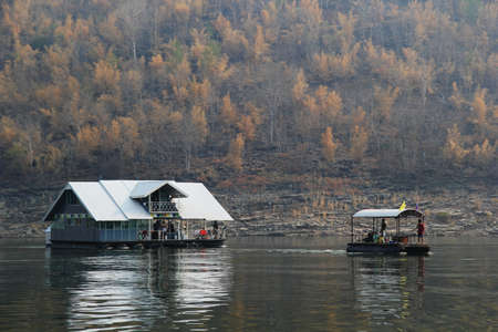 Floating Lake Houses on The Srinagarind Dam in Si Sawat District of Kanchanaburi Province, Thailand.