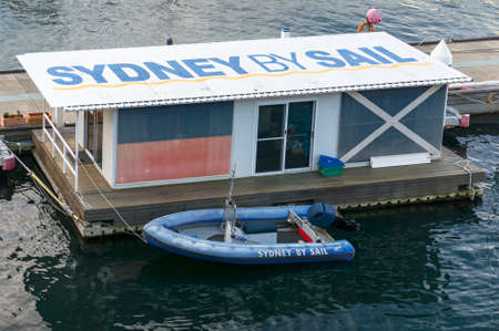 Sydney, Australia - August 04, 2013: Motor boat at Sydney tourist attraction Sydney by sail travel tourism office