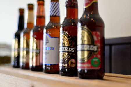 BIRZEIT, ISRAEL - MARCH 27, 2019: Birzeit Brewery Shepherds Beer bottles (Palestine)