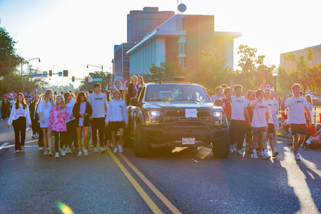 Oklahoma, OCT 15 2022 - Student walking in Homecoming parade
