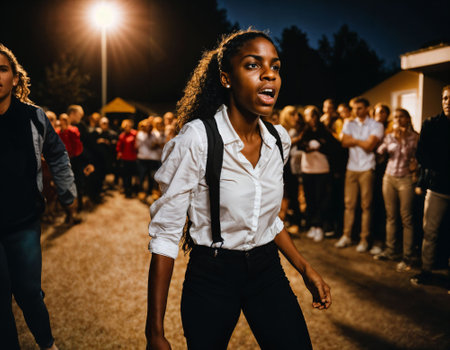 photo of rage angry black teenage college girl fighting the other with wound on face, generative AI
