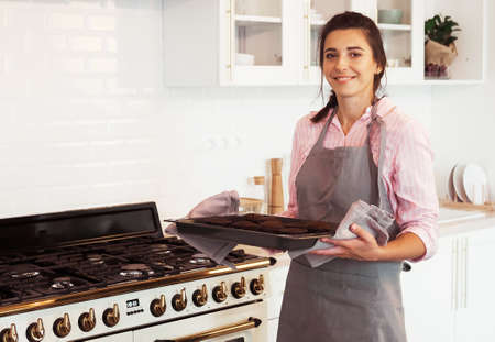Young woman cooking in the kitchen at home