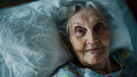 banner portrait of an elderly woman with short gray hair.