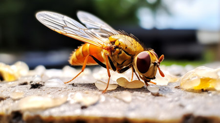 Generative AI : Fly closeup on a yellow background