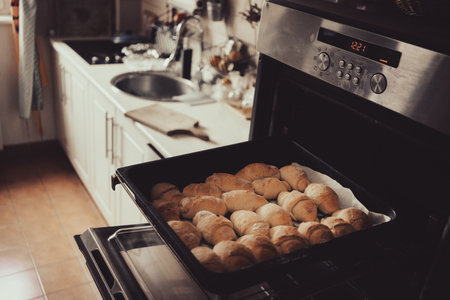 Homemade rolls baked in the oven, a scene from ordinary life at home.