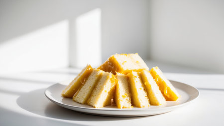 AI Generated. Delicious Lemon Drizzle Cake Slices on White Plate