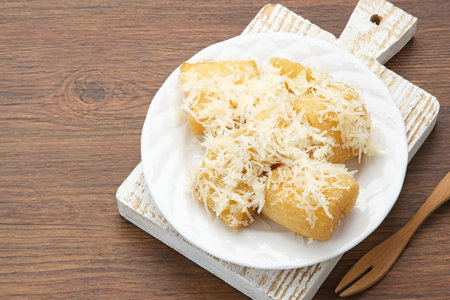Fried cassava with cheese or singkong goreng keju, Indonesian traditional food.