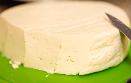 Cheese collection, piece of fresh homemade cheese made from cow milk