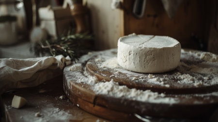 wheel of white cheese on the table generative ai