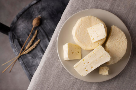 Homemade Adyghe cheese on a plate with spices