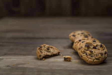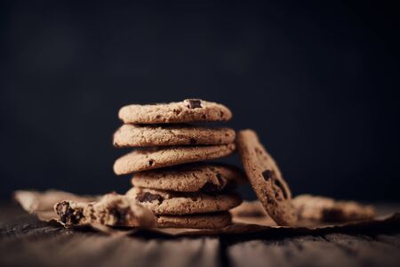 Cookies on wooden and dark background, delicious sweet dessert cookie food snack, cookies chocolate