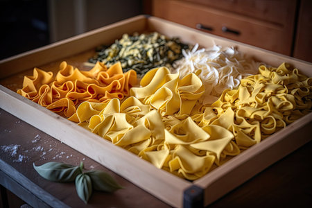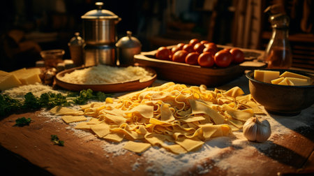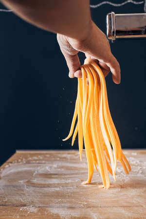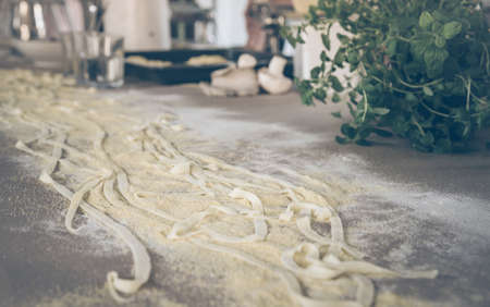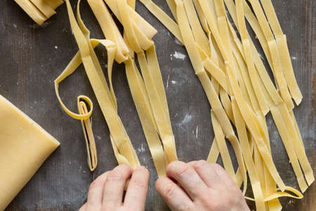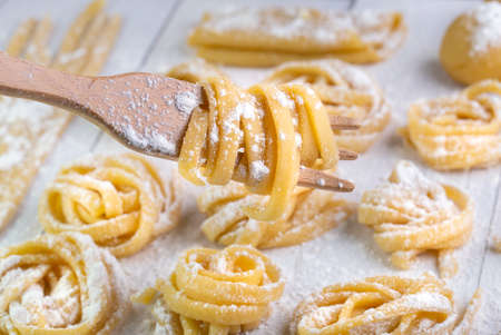 Fresh pasta. Handmade homemade Italian pasta made with fresh ingredients, eggs and wheat flour.