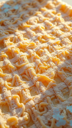 Close-up of intricate lattice crust on freshly baked pie. That the image is generated using AI.