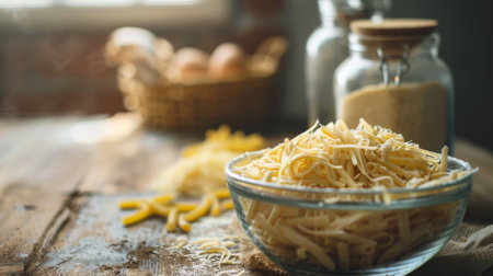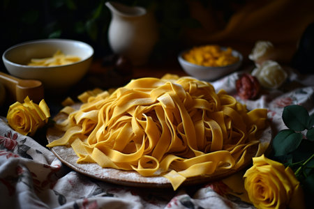 A rustic food banner showcasing fresh uncooked pasta ingredients, perfect for creating a classic Italian pasta dish.