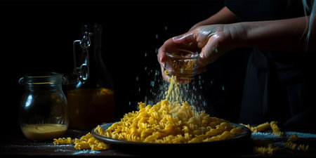 tray of freshly cooked dry pasta, ready to be enjoyed, created with generative ai
