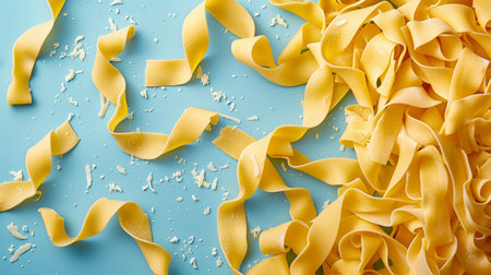 Flat lay top view fettuccine pasta on a yellow pastel background copy space