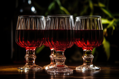 crystal glasses half filled with red wine, created with generative ai