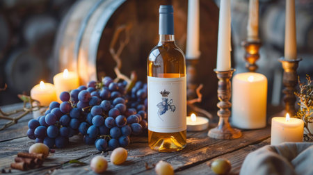 wine bottles and glasses arranged on rustic wooden table, created with generative ai