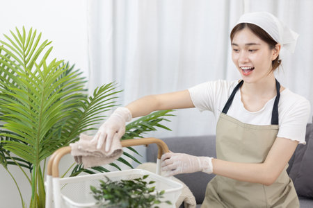 Cleaning and Home Organization. Two women tidying up their living space together, creating a fresh and inviting atmosphere.