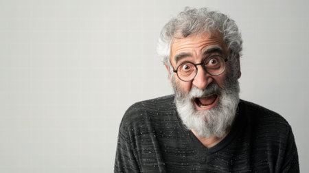 A serious, wrinkled man with gray hair and a beard generated by artificial intelligence