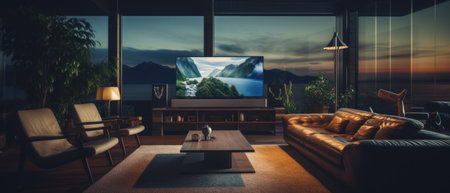 Detailed perspective of a cutting edge smart tv in a stylish contemporary living room setting