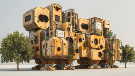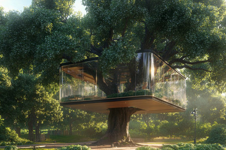 Futuristic treehouse architecture: eco-friendly design meets modern innovation.