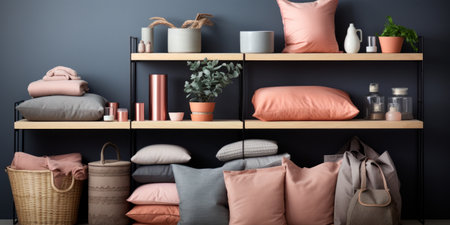 home decor shop, with a variety of pillows and throws available for purchase, created with generative ai