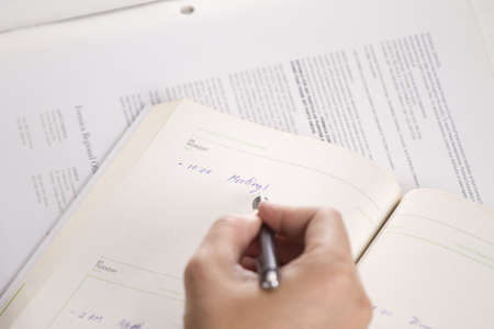 Close-up Of Man Writing Important Notes In Diary With Pen