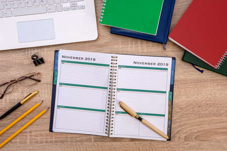 Daily diary calendar on white desk in office. New concept 2020. Calendar reminder event concept.