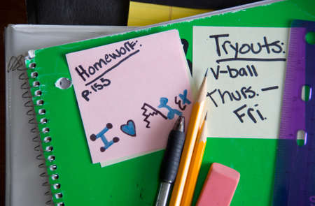Organized student homework plan and test preparation checklist with colorful stationery and study schedule on a spiral notebook.
