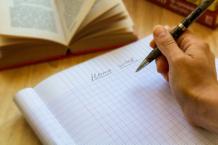 Close up of studying student hands writing in book during lecture education students college of university, Reading, Learning and Exam. Education concept