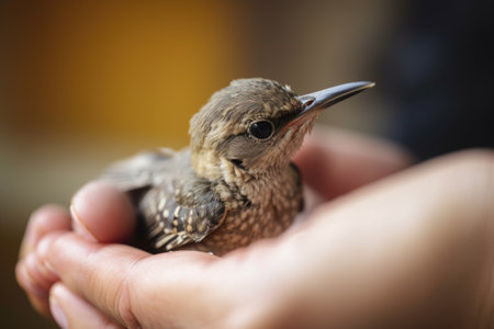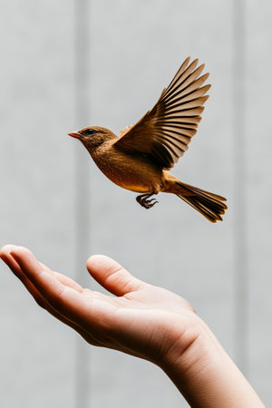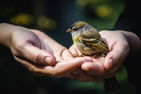 A bird sits on a hand.generative ai